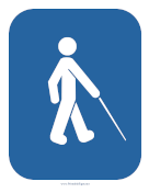 This distinctive white-on-blue sign with an icon of a person walking with a cane can be displayed anywhere blind people or others with low vision are likely to congregate or be crossing roadways.